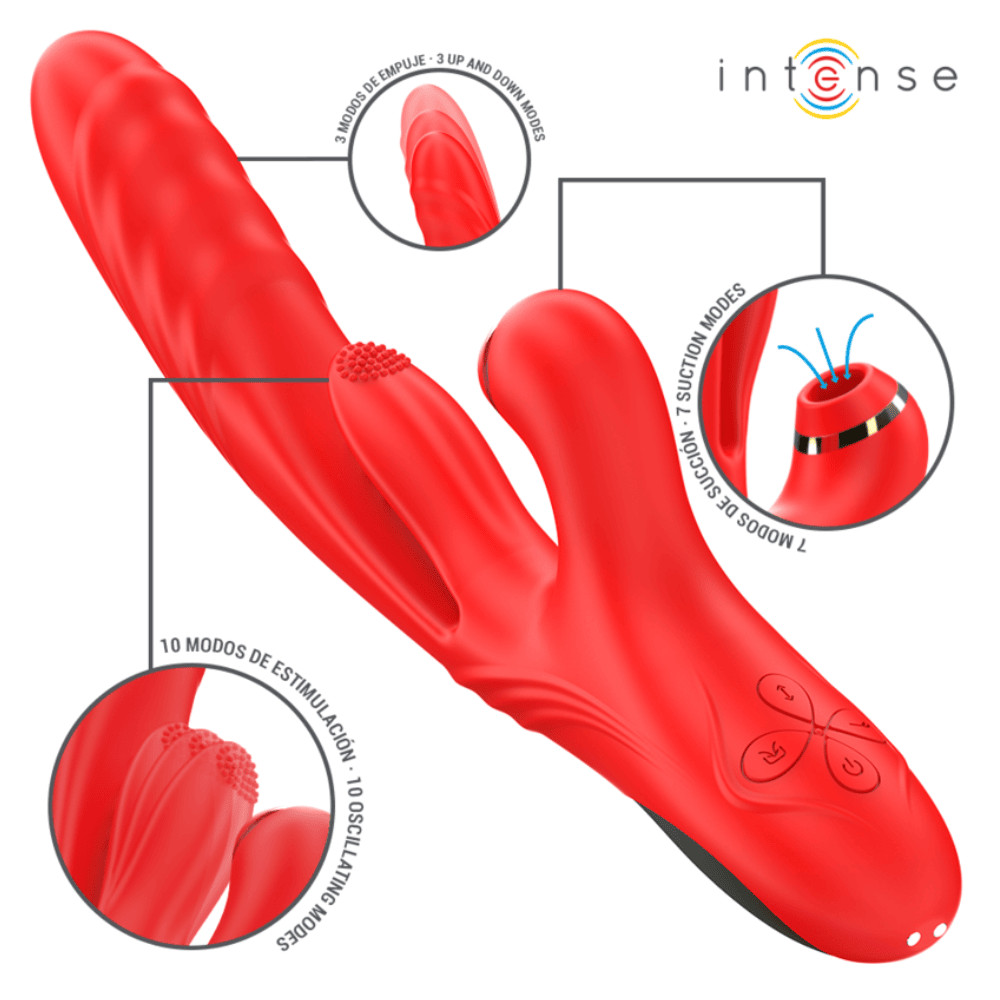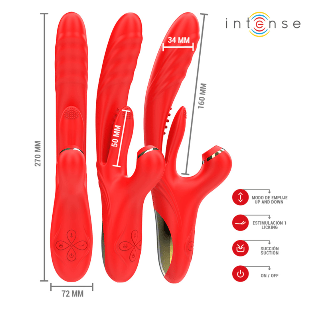 Különleges, négy stimuláló funkcióval is felszerelt, vibrációval, léghullámokkal és mozgással is működő vibrátor az átlagosnál egy árnyalatnyival nagyobb méretben.
