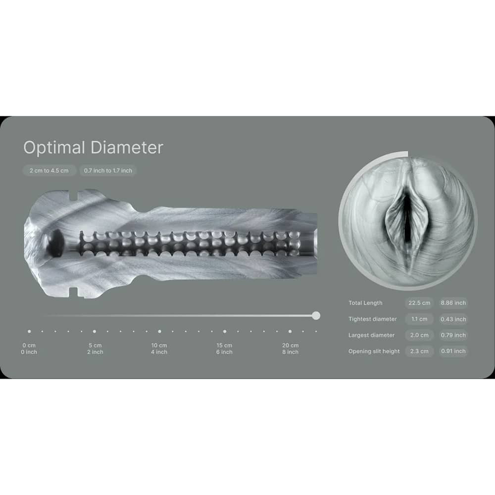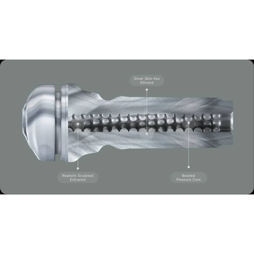 A játékszer egy kemény, jó minőségű ABS műanyag tokkal rendelkezik, amelyben egy kellően "húsos", felfedezésre váró betétet találunk. A betét puha, bőrszerű szilikon anyagának köszönhetően meglepően valósághű és erős vizuális élményt nyújt. A betét belsejében lévő járat puha gömbszerű gyöngyökkel lett állátva, melyik intenzív stimulációval kecsegtetnek. A járat pontos kialakítását a termék képei között meg is tudja tekinteni.