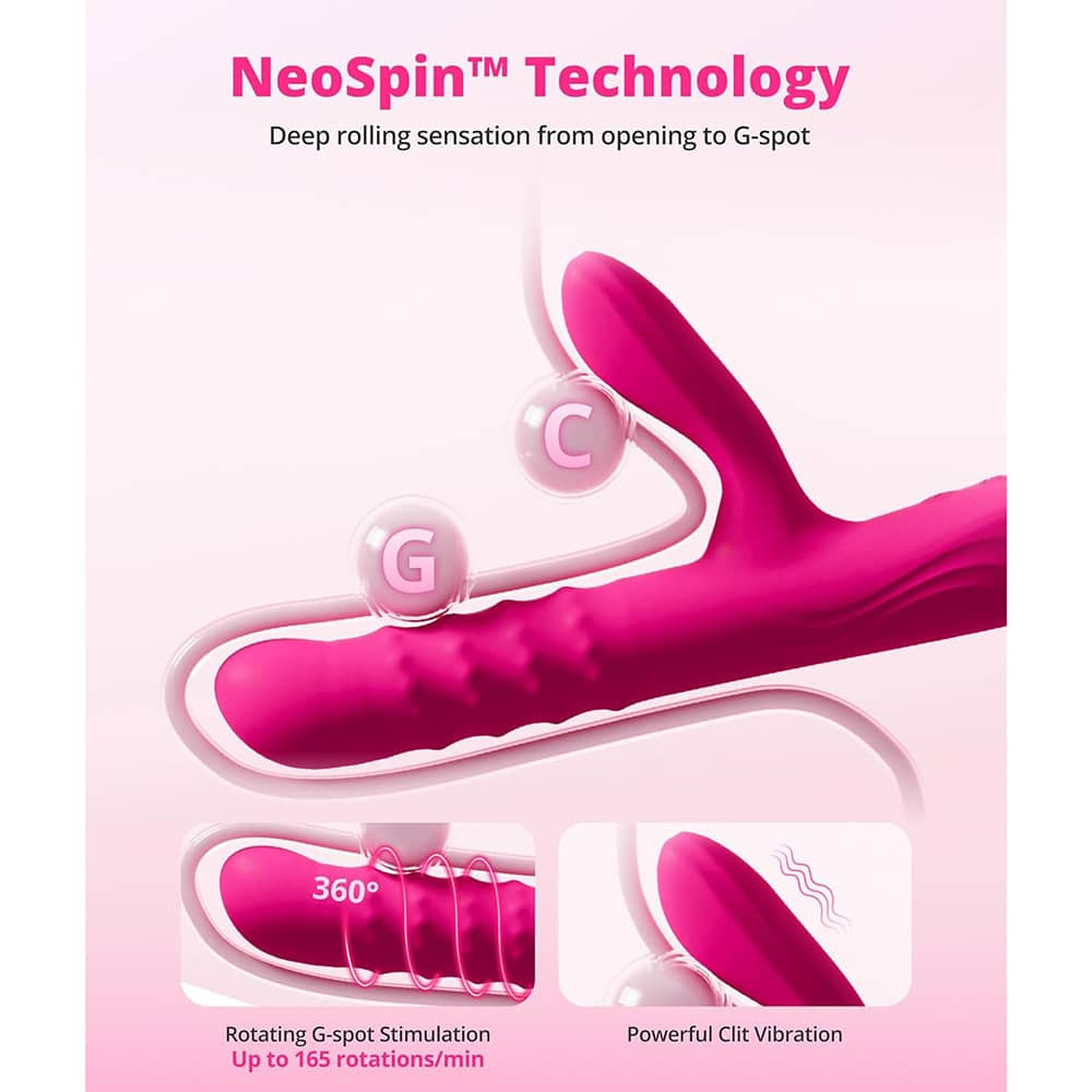 A behelyezésre szolgáló ág felületén, - közvetlenül a szilikon borítás alatt - spirál alakban fut végig a forgó gyöngysor, amely a testi adottságoktól függően a hüvely falának nagy részét 360°-ban, ezáltal a G-pontot is stimulálja. A gyöngysor forgása által keltett stimuláció igen hatékonynak tűnik, egészen különleges, kellemesen masszírozó jelzővel tudnánk illetni. A funkció működése halknak nem mondható, de ez teljesen normális jelenség az ilyen mechanikus mozgással dolgozó szexjátékszerek esetén. Az ág viszonylag merev, így kellően jó tartással rendelkezik. A végén lévő fejrész viszont enyhén puha, így a behelyezése könnyű és kellően komfortos. Fontos megjegyeznünk, hogy a gyöngysor forgása közben a fejrész is enyhe forgó mozgást végez a tengelye körül, igen, ez még további örömforrást jelent. :)