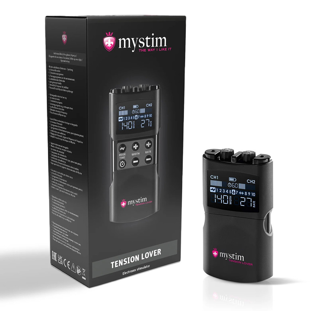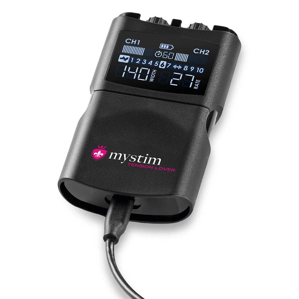 - 1 db Mystim Tension Lover 2 elektrostimulációs jeladó doboz
