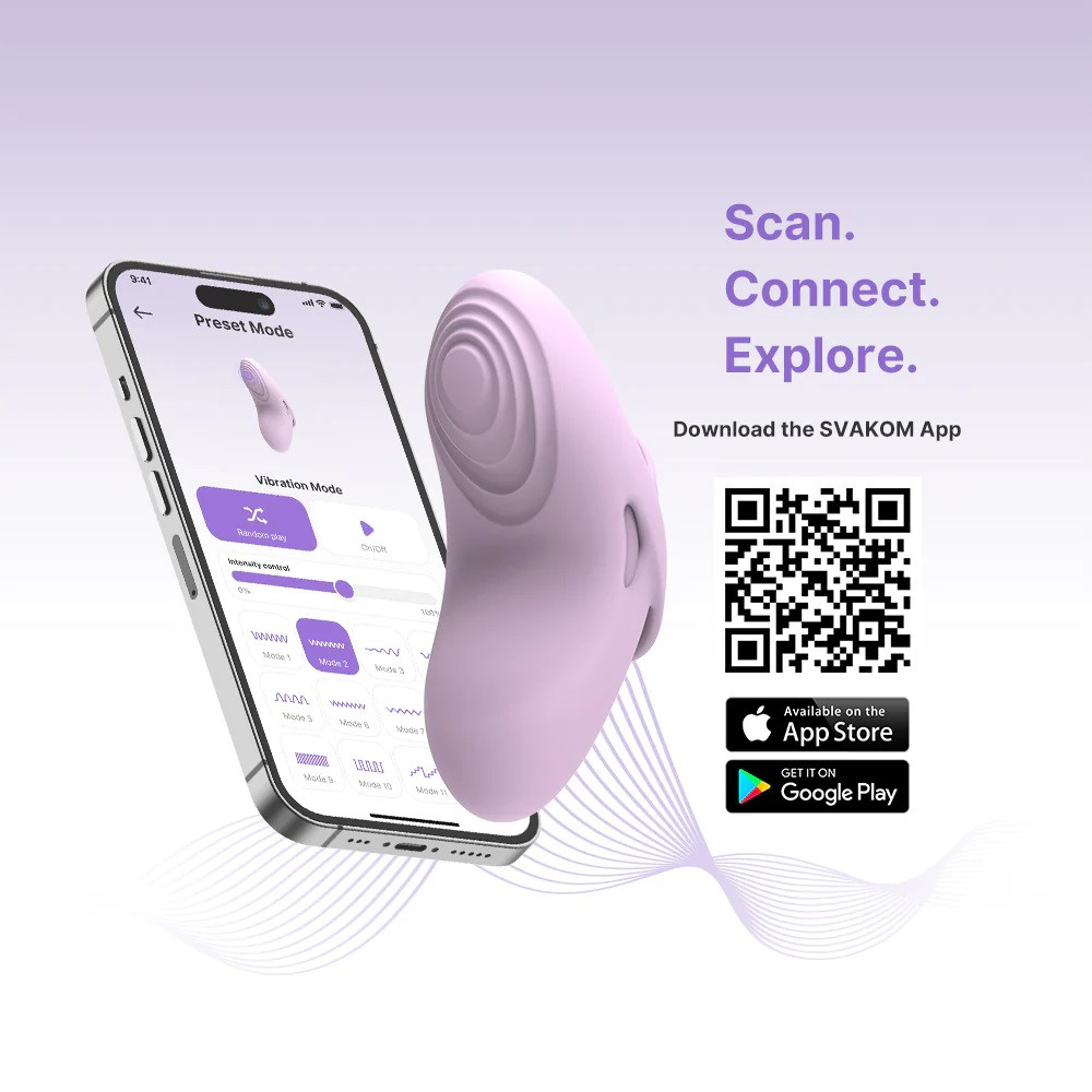- Végül, de nem utolsó sorban átadhatjuk a vezérlés lehetőségét partnerünk, aki a SVAKOM app-ot letöltve a világ bármely pontjáról irányíthatja az örömszerzőnket. Ez a funkció jól jöhet távkapcsolati élethelyzetekben, webcam-es kalandoknál