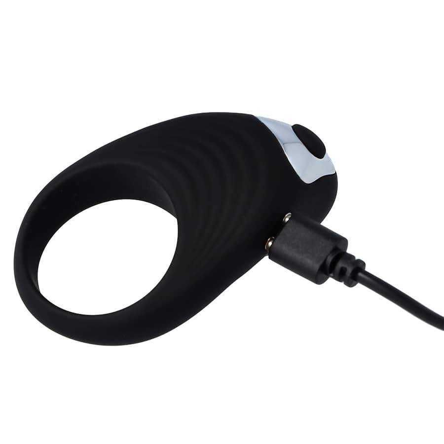 Rugalmas, selymes tapintású szilikonból készült, csiklóizgató ággal ellátott vibrációs péniszgyűrű.