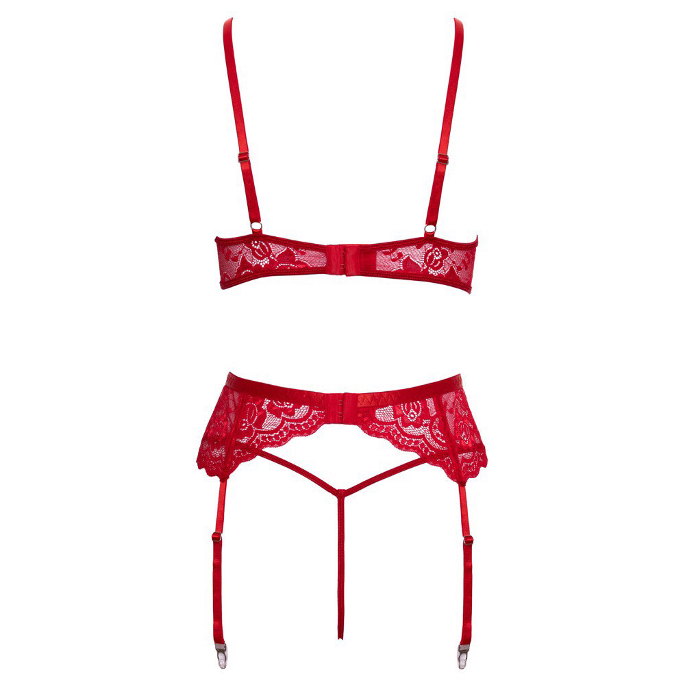 Cottelli 3 részes (melltartó, harisnyatartó, tanga) csipkés karácsonyi szett (piros)